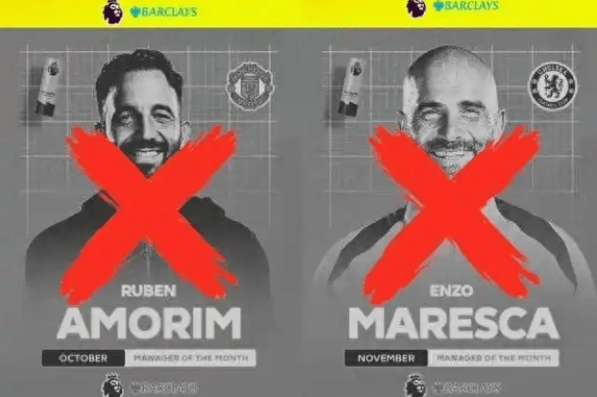 2025-26赛季英超开打以来,目前已经产生了4名月最佳教练,而其中2人已经下课,另外2人的境况也不好过,英超官方的月最佳教练已成近期最大“魔咒”。